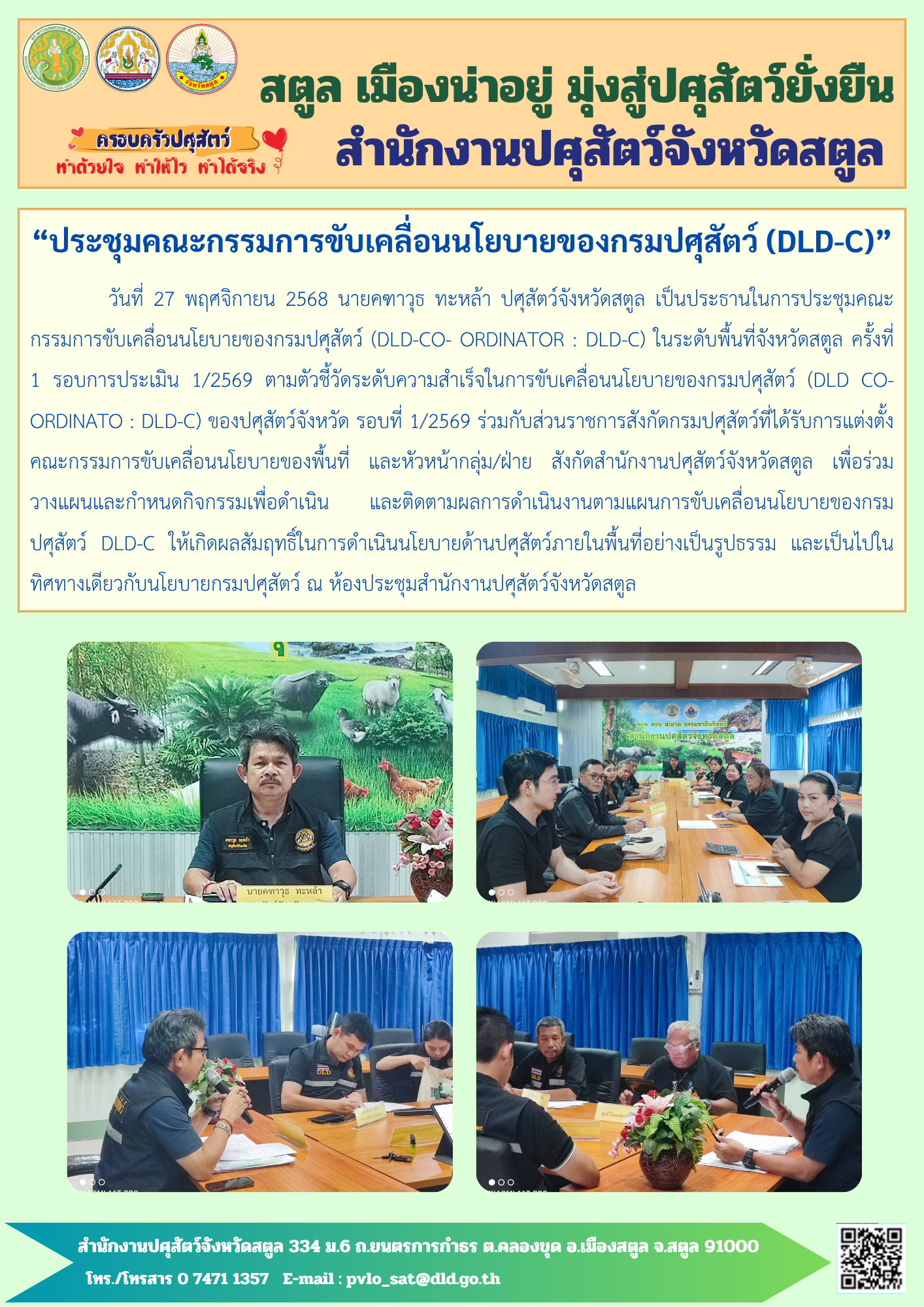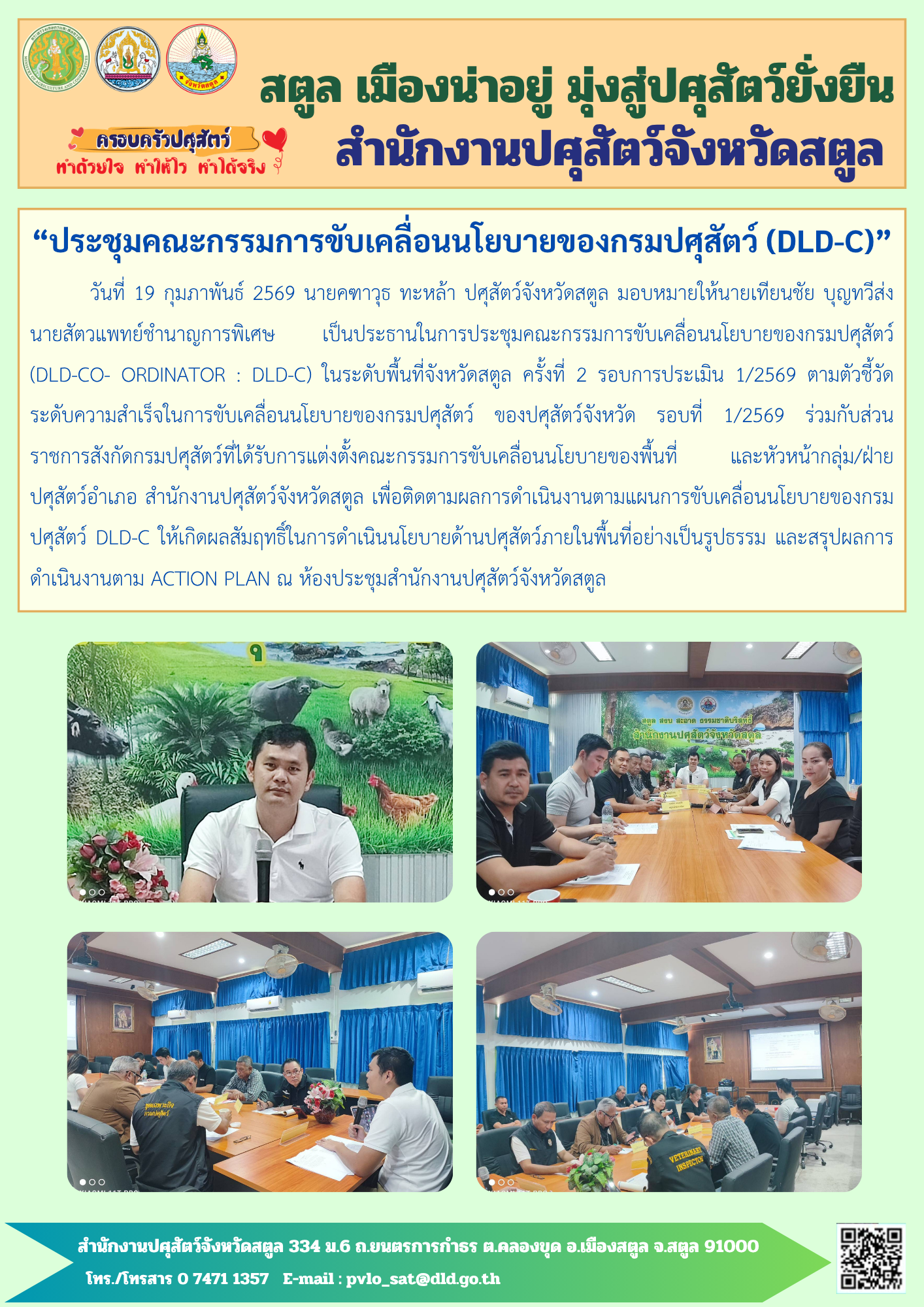 การขับเคลื่อนนโยบายกรมปศุสัตว์ (DLD-Co-ordinator : DLD-C) ประจำปีงบประมาณ พ.ศ. 2569 รอบที่ 1