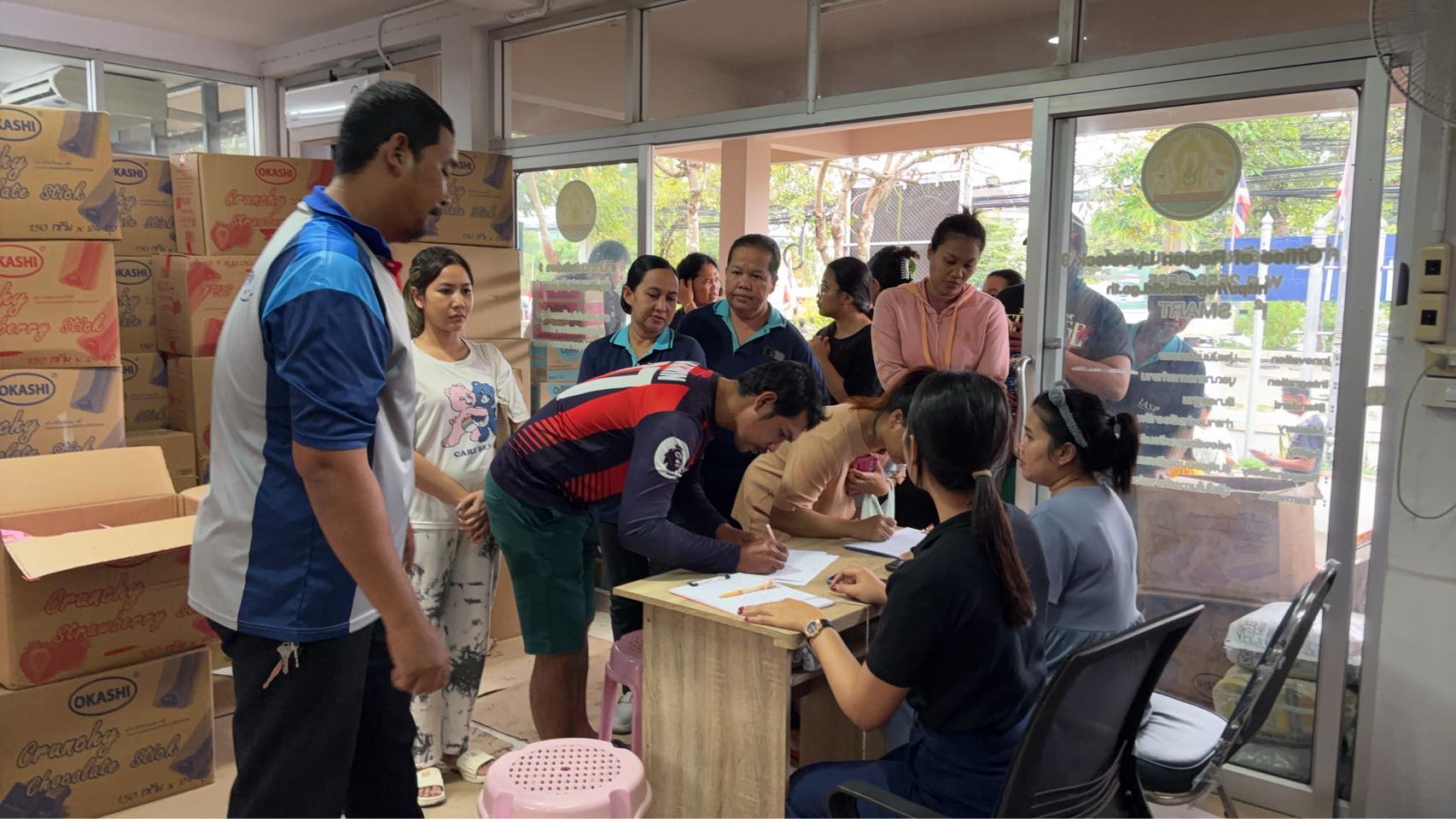 ขอความร่วมมือผู้ประสบภัยเนื่องจากมีผู้มีรับอาหารจำนวนมาก จึงขอให้ผู้ประสบภัยนำบัตรประจำตัวประชาชนเพื่อยืนยันตัวตนกับเจ้าหน้าที่