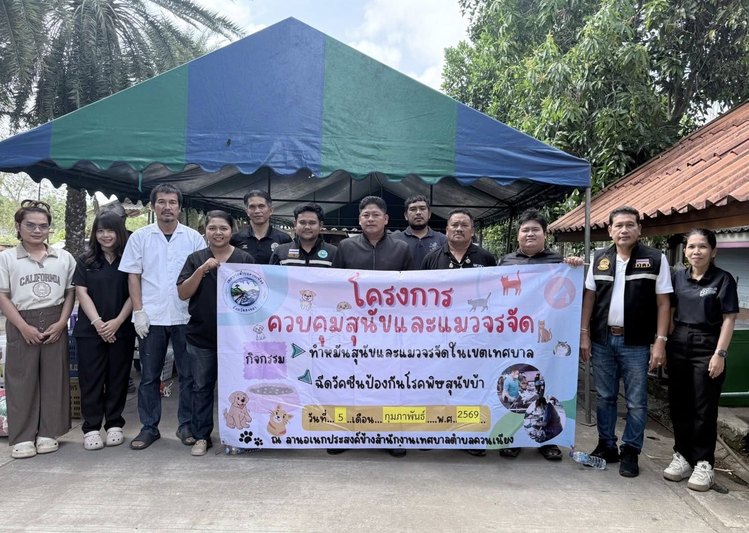 วันพฤหัสบดี ที่ 5 กุมภาพันธ์ 2569 นายสัตวแพทย์ ดร.อนิรุธ เนื่องเม็ก ปศุสัตว์เขต 9 มอบหมายให้ส่วนสุขภาพสัตว์ สำนักงานปศุสัตว์เขต 9 ร่วมกับกลุ่มพัฒนาสุขภาพสัตว์และสัตวแพทย์ในสังกัดสำนักงานปศุสัตว์จังหวัดสงขลา และเทศบาลตำบลควนเนียง เข้าร่วมกิจกรรมผ่าตัดทำหมันสุนัขจรจัดเพื่อควบคุมและลดจำนวนประชากรสัตว์ เพื่อแก้ไขปัญหาสัตว์จรจัดในพื้นที่ภายใต้แผนยุทธศาสตร์ โครงการสัตว์ ปลอดโรค คนปลอดภัย จากโรคพิษสุนัขบ้า ประจำปีงบประมาณ พ.ศ. 2569 ณ ศาลาอเนกประสงค์บริเวณเทศบาลตำบลควนเนียง อำเภอควนเนียง จังหวัดสงขลา