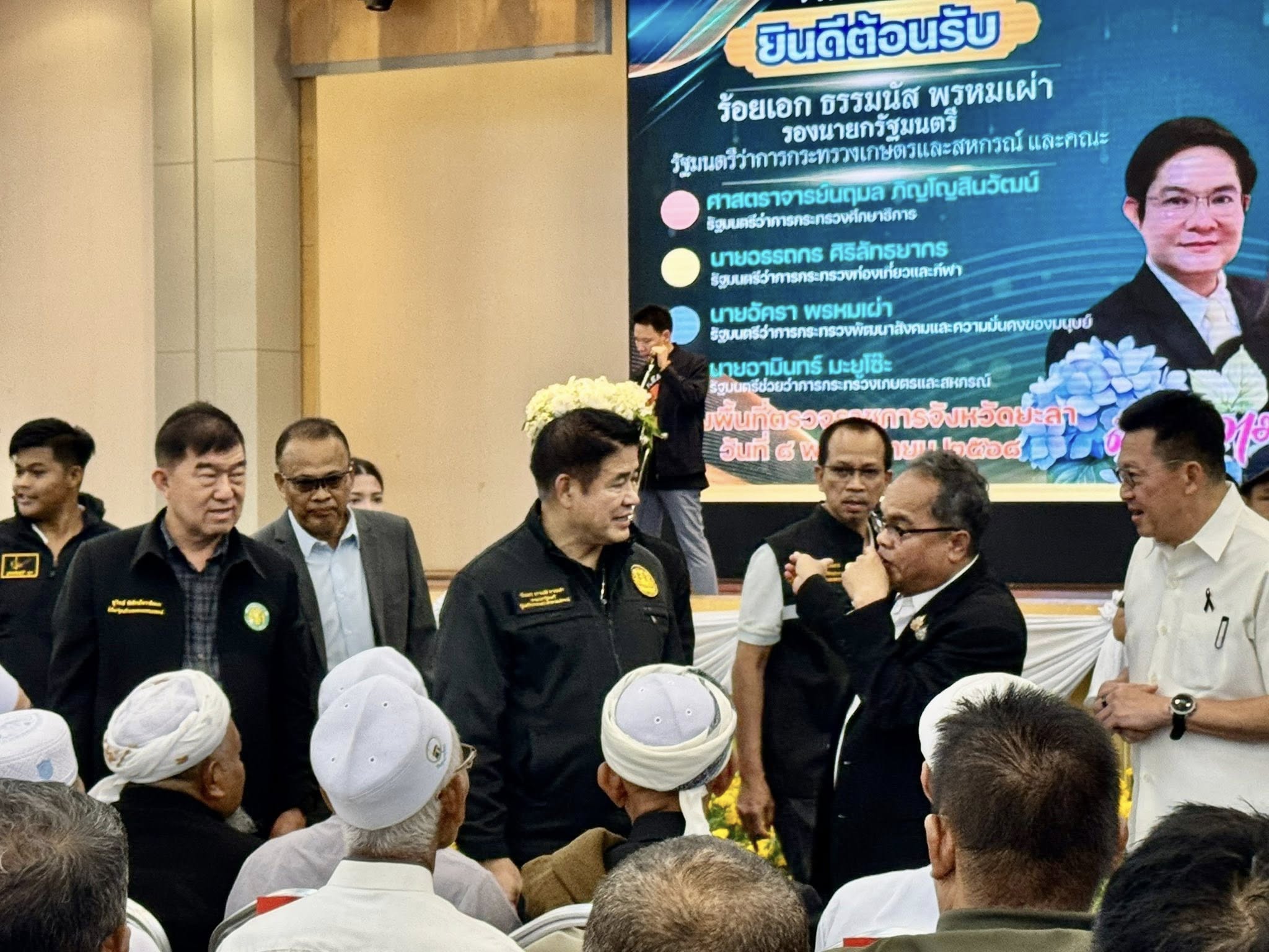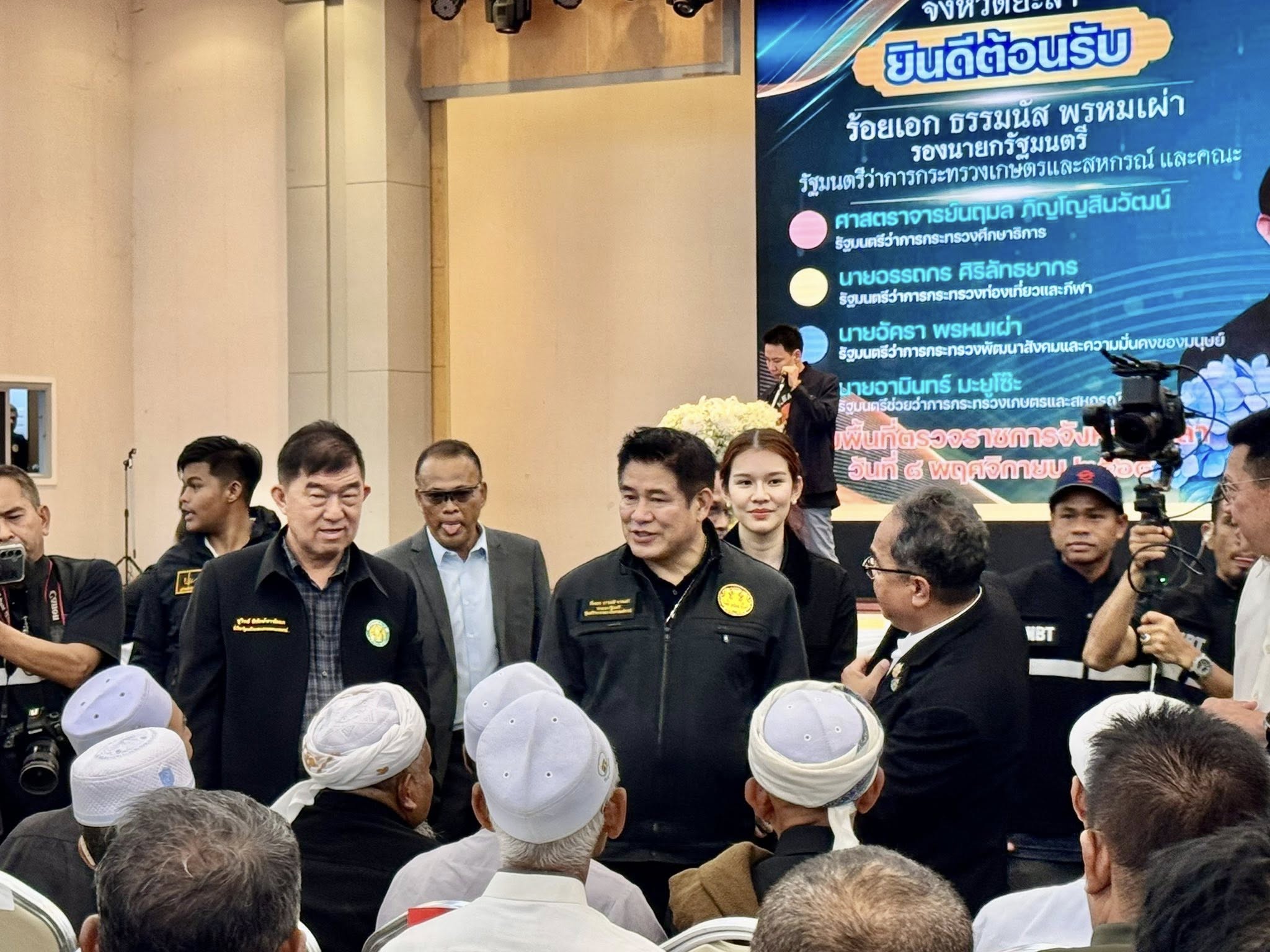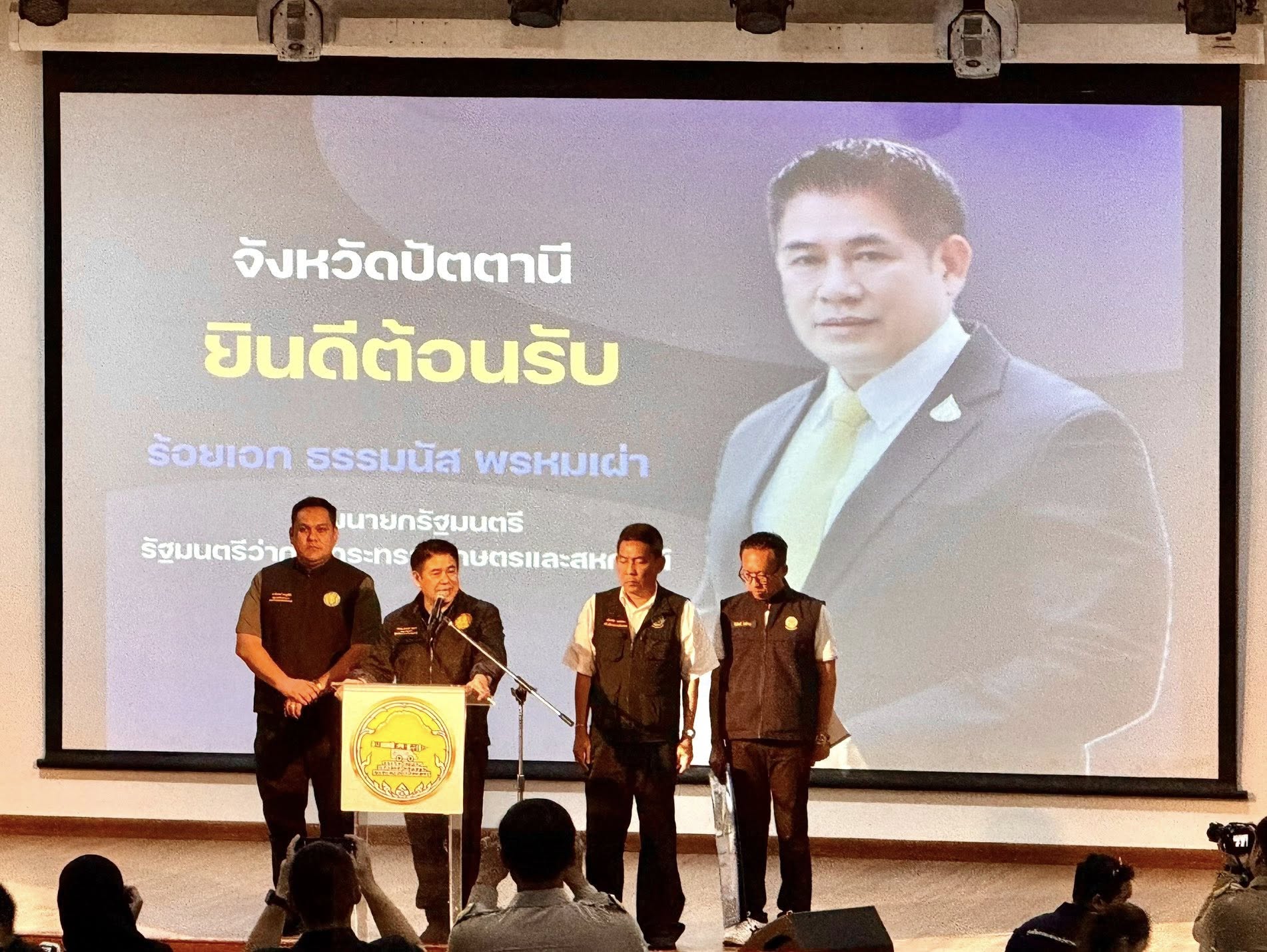 วันเสาร์ ที่ 8 พฤศจิกายน 2568 ร้อยเอก ธรรมนัส พรหมเผ่า รองนายกรัฐมนตรี และรัฐมนตรีว่าการกระทรวงเกษตรและสหกรณ์ ลงพื้นที่ตรวจราชการและรับฟังปัญหาความเดือดร้อนของประชาชน โดยมี ศ.ดร.นฤมล ภิญโญสินวัฒน์ รัฐมนตรีว่าการกระทรวงศึกษาธิการ นายอัครา พรหมเผ่า รัฐมนตรีว่าการกระทรวงการพัฒนาสังคมและความมั่นคงของมนุษย์ นายอรรถกร ศิริลัทธยากร รัฐมนตรีว่าการกระทรวงการท่องเที่ยวและกีฬา นายอามินทร์ มะยูโซ๊ะ รัฐมนตรีช่วยว่าการกระทรวงเกษตรและสหกรณ์ ลงพื้นที่ตรวจราชการและรับฟังปัญหาความเดือดร้อนของประชาชน ณ จังหวัดปัตตานี และ จังหวัดยะลา
