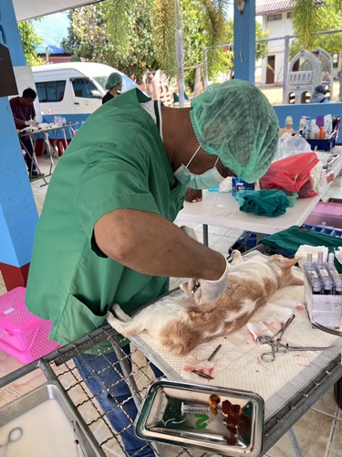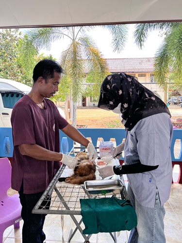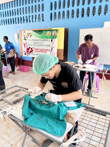 นายสัตวแพทย์ปฏิบัติการ พร้อมด้วยเจ้าหน้าที่กลุ่มพัฒนาสุขภาพสัตว์ และเจ้าหน้าที่ปศุสัตว์อำเภอ ร่วมกิจกรรมการผ่าตัดทำหมันและฉีดวัคซีนป้องกัน