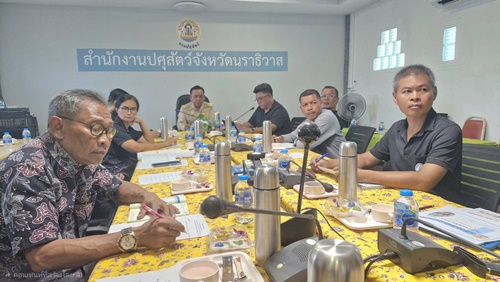 วันที่ 27 เมษายน 2569 เวลา 09.00 น. นายจักรพงษ์ ขานโบ ปศุสัตว์จังหวัดนราธิวาส เป็นประธานการประชุม พร้อมด้วยข้าราชการใน สำนักงานปศุสัตว์จังหวัดนราธิวาส ผู้อำนวยการศูนย์วิจัยและพัฒนาอาหารสัตว์นราธิวาส ผู้อำนวยการศูนย์วิจัยและบำรุงพันธุ์สัตว์นราธิวาส และเจ้าหน้าที่ด่านกักกันสัตว์จังหวัดนราธิวาส ร่วมประชุมประจำเดือน เมษา 2569 ครั้งที่ 7/2569 และการประชุมขับเคลื่อนนโยบายของกรมปศุสัตว์ (DLD Co-ordinator : DLD-C) โดยมี นายสัตวแพทย์กิตติศักดิ์ แสงสกุล ผู้อำนวยการศูนย์วิจัยการผสมเทียมและเทคโนโลยีชีวาพสงขลา ผ่านระบบ Zoom Conference เพื่อติดการผสมเทียมโครงการโคบาลชายแดนใต้ พร้อมแผนการลงพื้นที่ในเดือนพฤษภาคม 2569 และการเตรียมความพร้อมในการจัดงานกาชาดและงานประจำปี จังหวัดนราธิวาส ประจำปี 2569 ระหว่างวันที่ 9-19 พฤษภาคม 2569 โดยชื่อนิทรรศการ 111 ปี นราธิวาส เกษตรมูลค่าสูง นำสู่เมือง 5 ดี วิถียั่งยืน พร้อมการรายงานความก้าวหน้าผลการดำเนินงาน ตามแผนงานโครงการที่ได้รับ รวมไปถึง การบูรณาการของหน่วยงานกรมปศุสัตว์ ในพื้นจังหวัดนราธิวาสในการแก้ไขปัญหาและอุปสรรคที่เกิดขึ้น ณ ห้องประชุมสำนักงานปศุสัตว์จังหวัดนราธิวาส ตำบลโคกเคียน อำเภอเมือง จังหวัดนราธิวาส