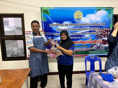 วันที่ 25 ธันวาคม 2568 เวลา 09.00 น. นายศิริสินธุ์ เพียรแก้ว ปศุสัตว์จังหวัดปัตานี พร้อมด้วย เจ้าหน้าที่กลุ่มส่งเสริมและพัฒนาการปศุสัตว์ ร่วมกับ กองผลิตภัณฑ์ปศุสัตว์ กรมปสุสัตว์ โดย นายเทพฤทธิ์ ทับบุญมี นักวิทยาศาสตร์ชำนาญการพิเศษ เป็นวิทยากร จัดฝึกอบรมโครงการพัฒนาศักยภาพกระบวนการผลิตสินค้าเกษตร หลักสูตร “การแปรรูปเนื้อสัตว์” การฝึกอบรมดังกล่าวมีวัตถุประสงค์เพื่อเสริมสร้างความรู้และทักษะด้านการแปรรูปผลิตภัณฑ์ปศุสัตว์ให้แก่เกษตรกร สามารถนำความรู้ไปประยุกต์ใช้ในการเพิ่มมูลค่าผลิตภัณฑ์ในระดับครัวเรือนและชุมชน นำไปสู่การสร้างรายได้และการพัฒนาอาชีพต่อไป โดยมี ซึ่งมีเนื้อหาดังนี้