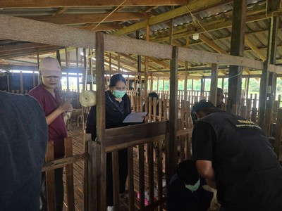 วันที่ 2 กุมภาพันธ์ 2569 นายศิริสินธุ์ เพียรแก้ว ปศุสัตว์จังหวัดปัตตานี มอบหมายให้ กลุ่มสุภาพสัตว์ และสำนักงานปศุสัตว์อำเภอเมืองปัตตานี ร่วมกับ กลุ่มสุขภาพสัตว์ สำนักงานปศุสัตว์เขต 9 จ.สงขลา ขับเคลื่อนงานปศุสัตว์ ตรวจเยี่ยมเกษตรกรและตรวจสุขภาพสัตว์ ตามกิจกรรมติดตามการฟื้นฟูสุขภาพสัตว์ เพื่อช่วยเหลือผู้ประสบภัยที่เลี้ยงสัตว์ มอบเวชภัณฑ์ และเจาะเลือดตรวจเพื่อเตรียมฟาร์มปลอดโรค พร้อมติดตามกลุ่มผู้เลี้ยงแพะและแกะ จำนวน 2 ฟาร์ม ได้แก่พื้นที่ ม.8 ต. ปากาฮะรัง กับ ม.7 ต.ตะลุโบะ อ.เมืองปัตตานี จ.ปัตตานี