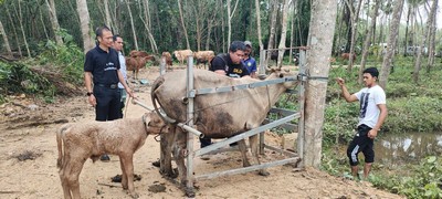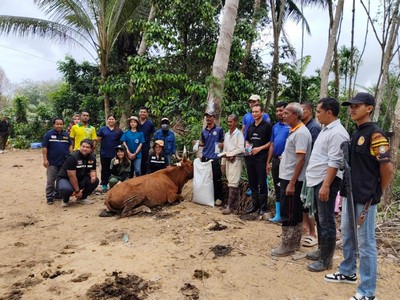 วันที่ 18 ธันวาคม 2568 เวลา 09.00 น. นายศิริสินธุ์ เพียรแก้ว ปศุสัตว์จังหวัดปัตตานี มอบหมายให้ กลุ่มพัฒนาสุขภาพสัตว์ กลุ่มส่งเสริมฯ และสำนักงานปศุสัตว์อำเภอมายอ บูรณาการหน่วยงานร่วมกับ สำนักควบคุมและบำบัดโรคสัตว์ กรมปศุสัตว์, ส่วนสุขภาพสัตว์ สำนักงานปศุสัตว์เขต 9 ลงพื้นที่ช่วยเหลือเกษตรกรผู้เลี้ยงสัตวและฟื้นฟูสุขภาพสัตว์ พร้อมป้องกันโรคระบาดสัตว์ให้แก่เกษตรกรผู้เลี้ยงสัตว์ที่ได้รับผลกระทบจากอุทกภัย รวมถึงให้คำแนะนำด้านการเลี้ยงสัตว์ในสภาพแวดล้อมที่ไม่เอื้ออำนวยหลังช่วงวิกฤตน้ำท่วม มอบอาหารสัตว์ เวชภัณฑ์ให้แก่เกษตรกรที่ได้รับผลกระทบจากอุทกภัย ในพื้นที่ อ.มายอ จ.ปัตตานี ผลการปฏิบัติงานเป็นไปด้วยความเรียบร้อย