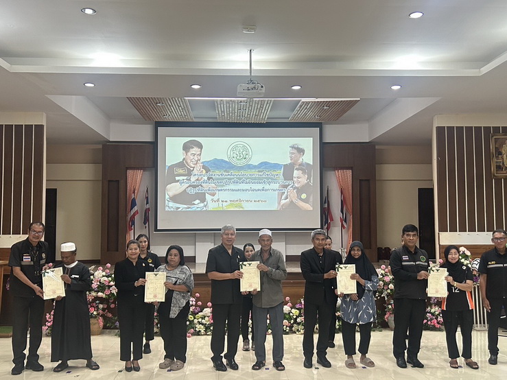 วันที่ 21 พฤศจิกายน 2568 เวลา 10.30 น. นายพินิจ สวัสดิรักษา ปศุสัตว์จังหวัดสงขลา ร่วมพิธีมอบโฉนดเพื่อการเกษตร “โครงการขับเคลื่อนนโยบายการแก้ไขปัญหาผู้ครอบครองที่ดินในเขตปฏิรูปที่ดิน ที่ไม่ยินยอมเข้าสู่กระบวนการปฏิรูปที่ดิน เพื่อเกษตรกรรมและมอบโฉนดเพื่อการเกษตร” โดยมีนายชูชีพ ธรรมเพชร รองผู้ว่าราชการจังหวัดสงขลา เป็นประธานในพิธี ณ หอประชุมบัวหลวง โรงเรียนจะนะชนูปถัมภ์ ตำบลคู อำเภอจะนะ จังหวัดสงขลา
