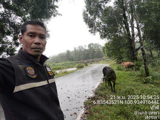 วันที่ 21 พฤศจิกายน 2568 นายพินิจ สวัสดิรักษา ปศุสัตว์จังหวัดสงขลา มอบหมายเจ้าหน้าที่ สำนักงานปศุสัตว์จังหวัดสงขลา และสำนักงานปศุสัตว์อำเภอ ลงพื้นที่ตรวจติดตามสถานการณ์น้ำ เฝ้าระวังน้ำป่าไหลหลาก และน้ำท่วมขังกรณีฝนตกหนัก พร้อมกันนี้ ได้มอบถุงยังชีพสำหรับสัตว์เลี้ยง และได้เตรียมความพร้อมช่วยเหลือเกษตรกร โดยการสำรองเสบียงอาหารสัตว์ (หญ้าแห้ง) จำนวน 150,000 กิโลกรัม เวชภัณฑ์สัตว์ จำนวน 70 ชุด และหน่วยสัตวแพทย์เคลื่อนที่ จำนวน 2 ชุด ให้แก่เกษตรกรผู้สบอุทกภัยในพื้นที่เสี่ยง 9 อำเภอ 35 ตำบล 88 หมู่บ้าน ของจังหวัดสงขลา