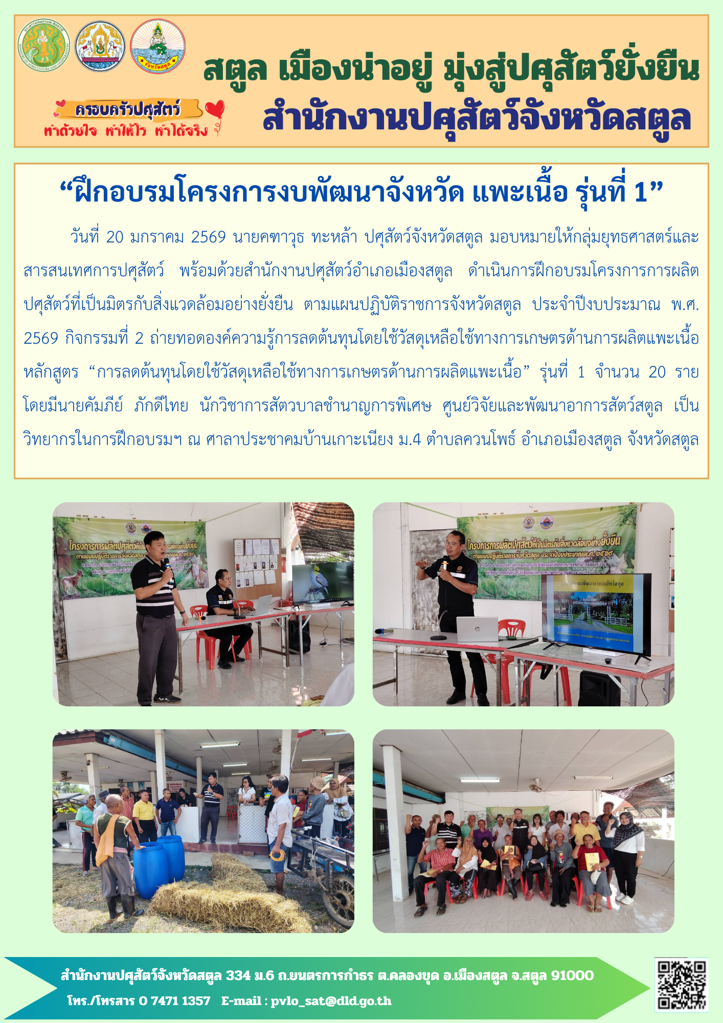 ฝึกอบรมโครงการภายใต้งบพัฒนาจังหวัดสตูล (แพะเนื้อ รุ่น 1)