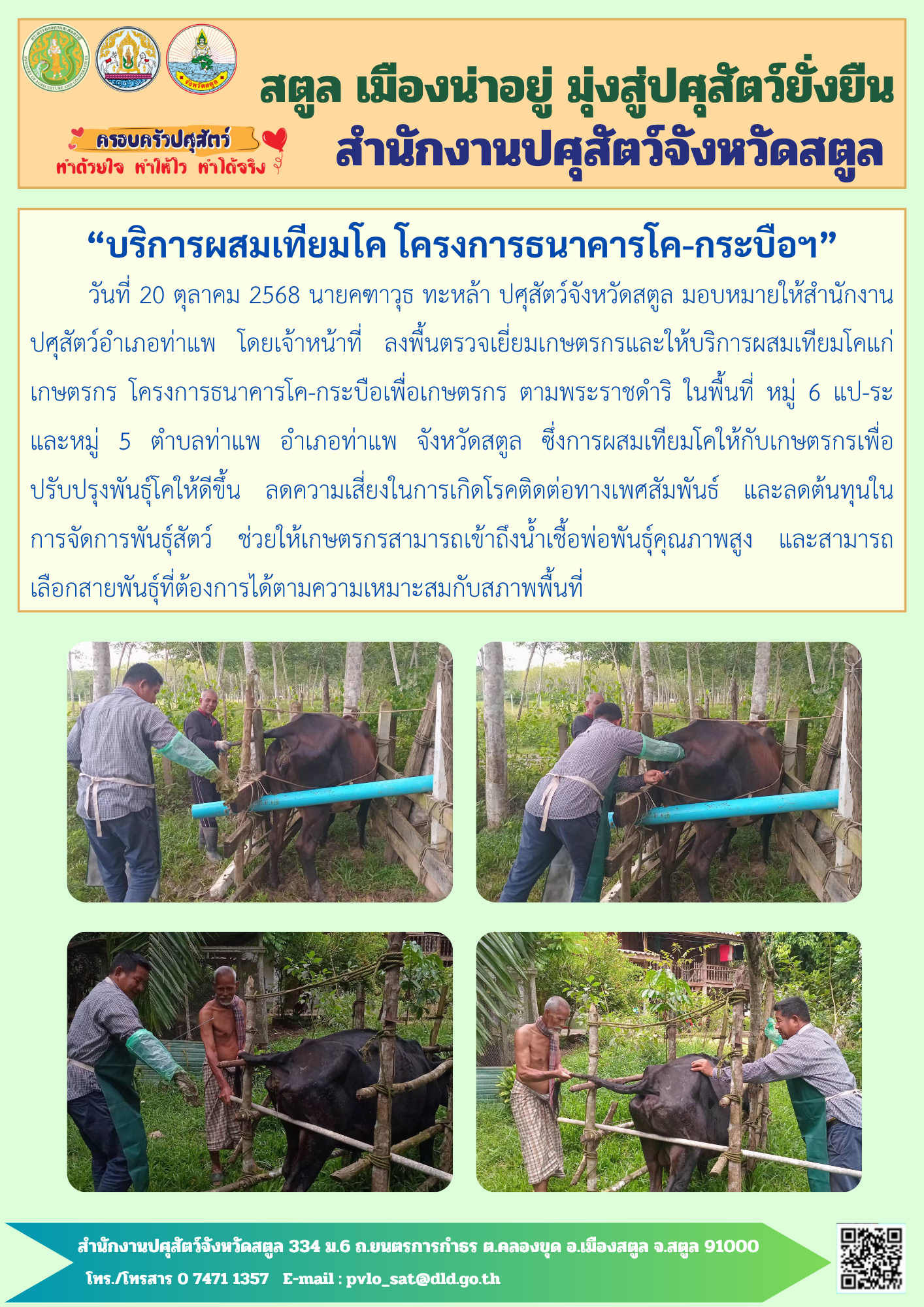 ให้บริการผสมเทียมโค โครงการธนาคารโค-กระบือเพื่อเกษตรกร ตามพระราชดำริ