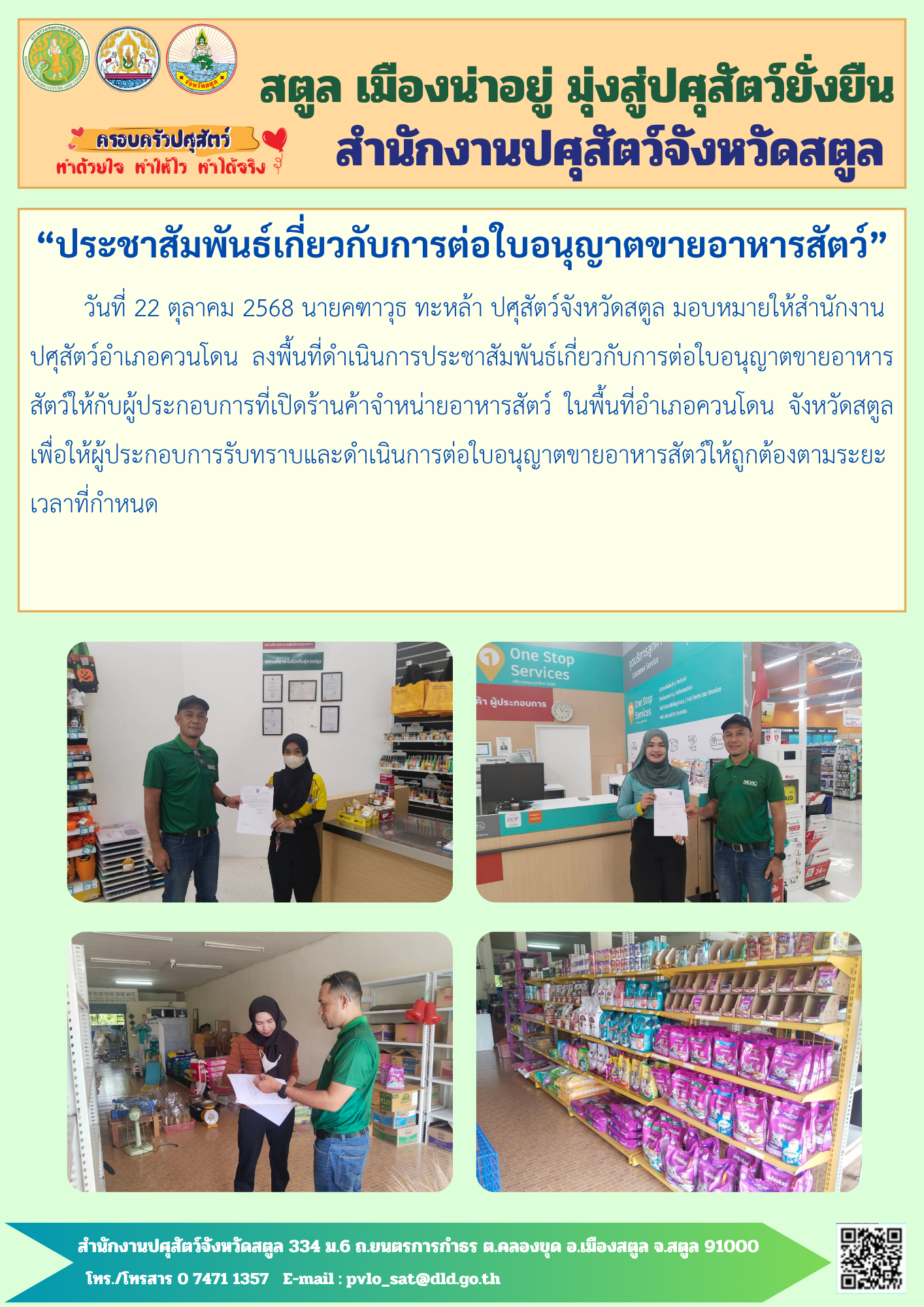 ลงพื้นที่ประชาสัมพันธ์เกี่ยวกับการต่อใบอนุญาตขายอาหารสัตว์