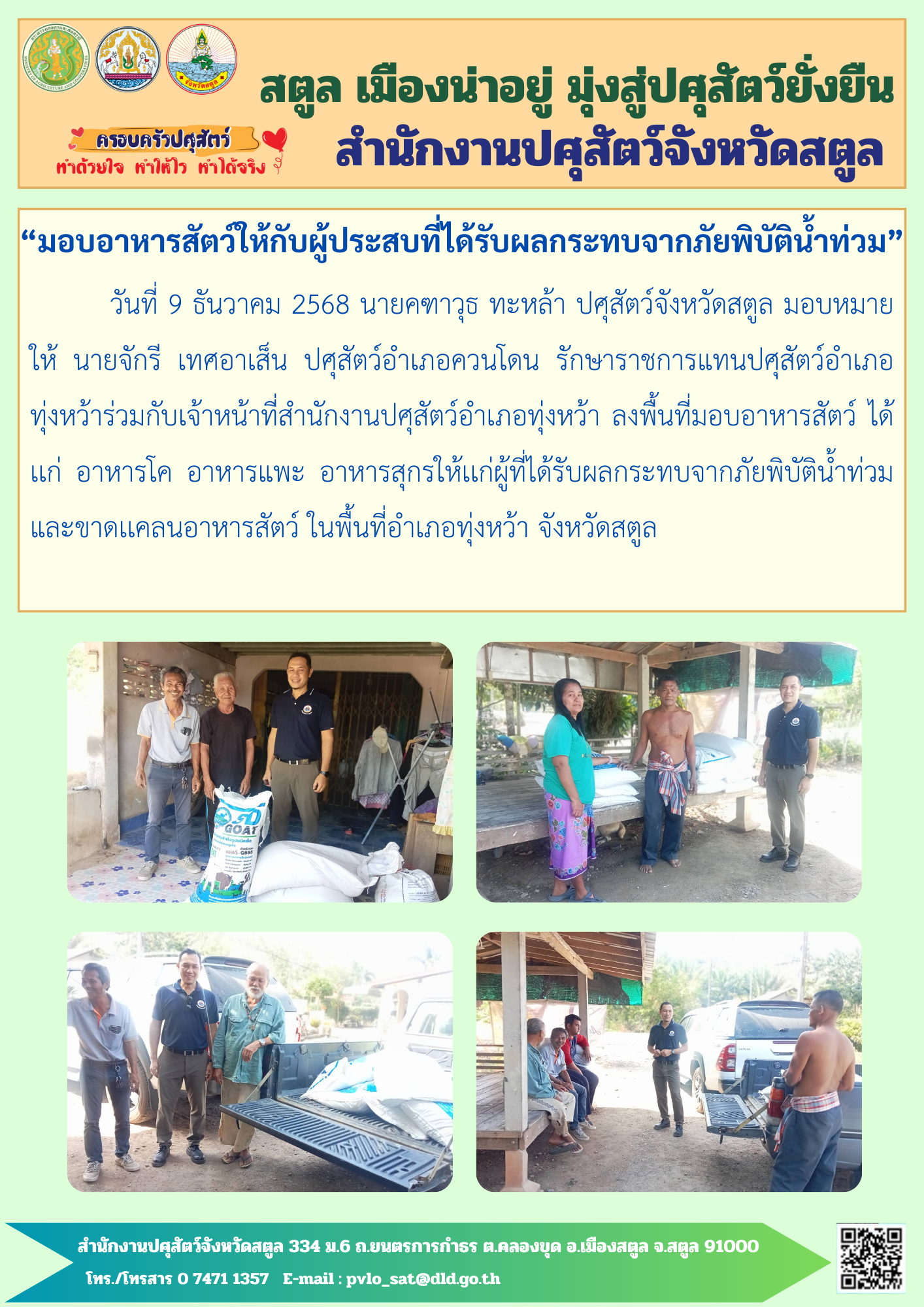 มอบอาหารสัตว์ให้กับผู้ประสบที่ได้รับผลกระทบจากภัยพิบัติน้ำท่วม