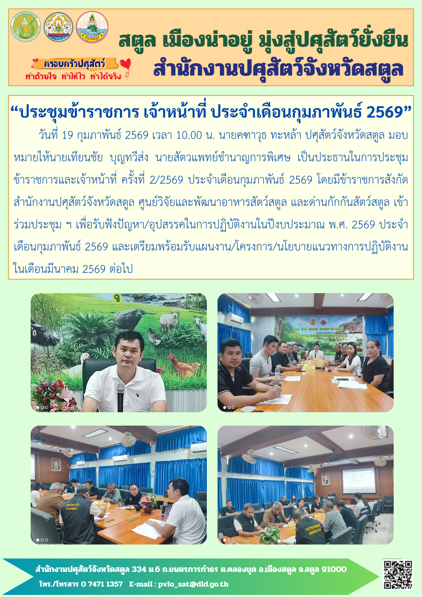 ประชุมข้าราชการ เจ้าหน้าที่ สำนักงานปศุสัตว์จังหวัดสตูล ประจำเดือนกุมภาพันธ์ 2569
