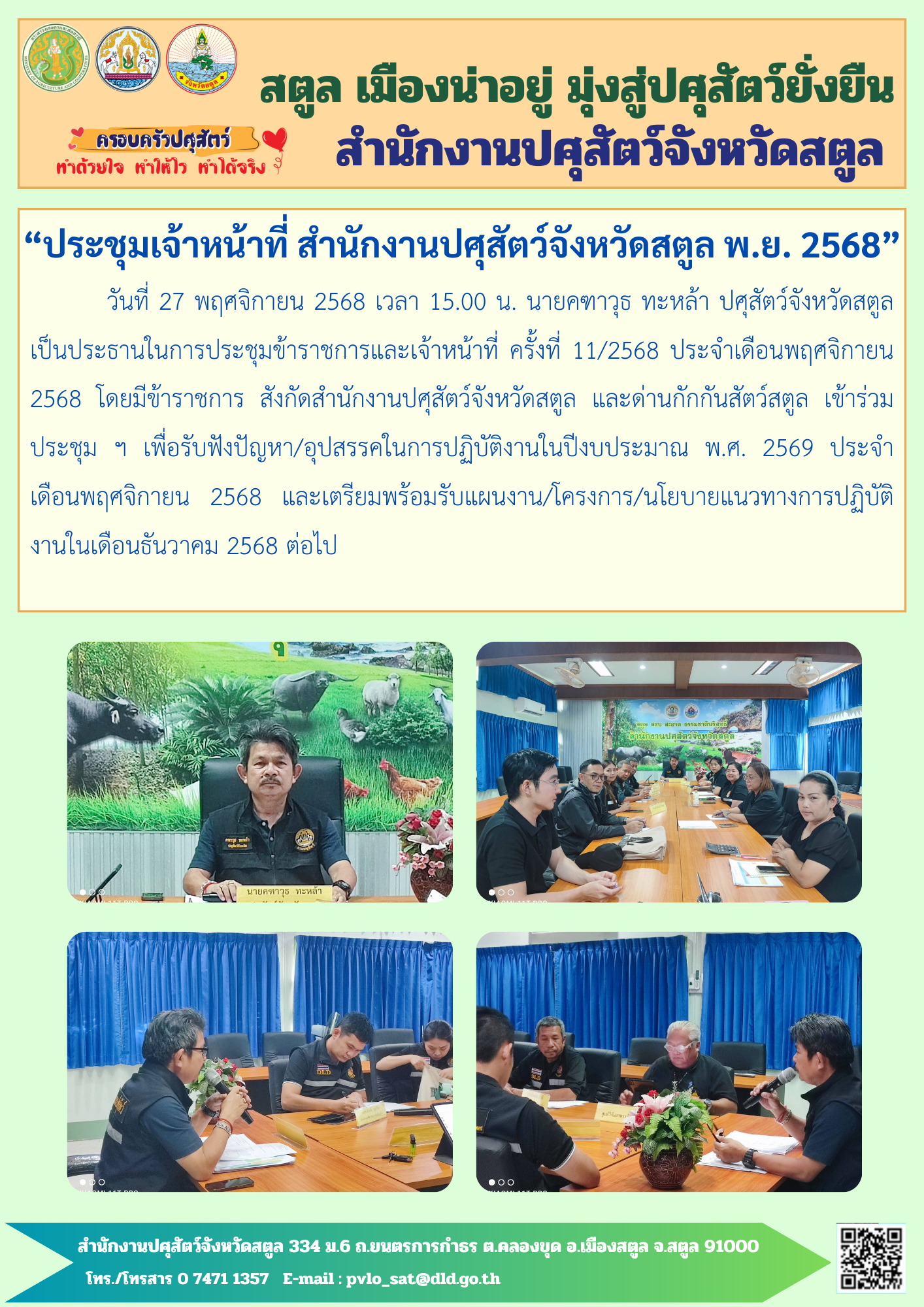 4. ปศุสัตว์จังหวัดสตูล ประชุมข้าราชการ เจ้าหน้าที่ สำนักงานปศุสัตว์จังหวัดสตูล ประจำเดือนพฤศจิกายน 2568