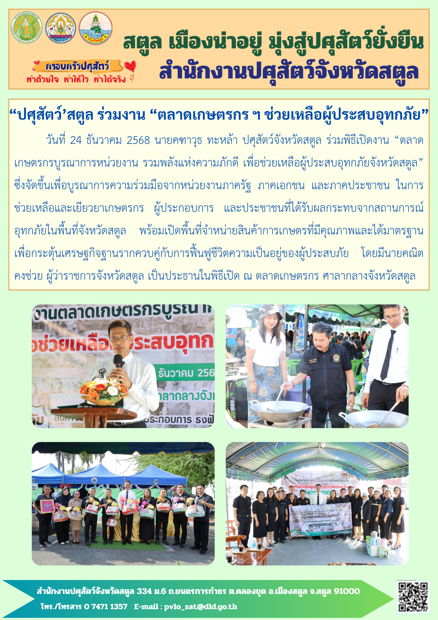 4. ปศุสัตว์จังหวัดสตูล ร่วมเปิดงาน “ตลาดเกษตรกรบูรณาการหน่วยงาน รวมพลังแห่งความภักดี เพื่อช่วยเหลือผู้ประสบอุทกภัย จังหวัดสตูล”