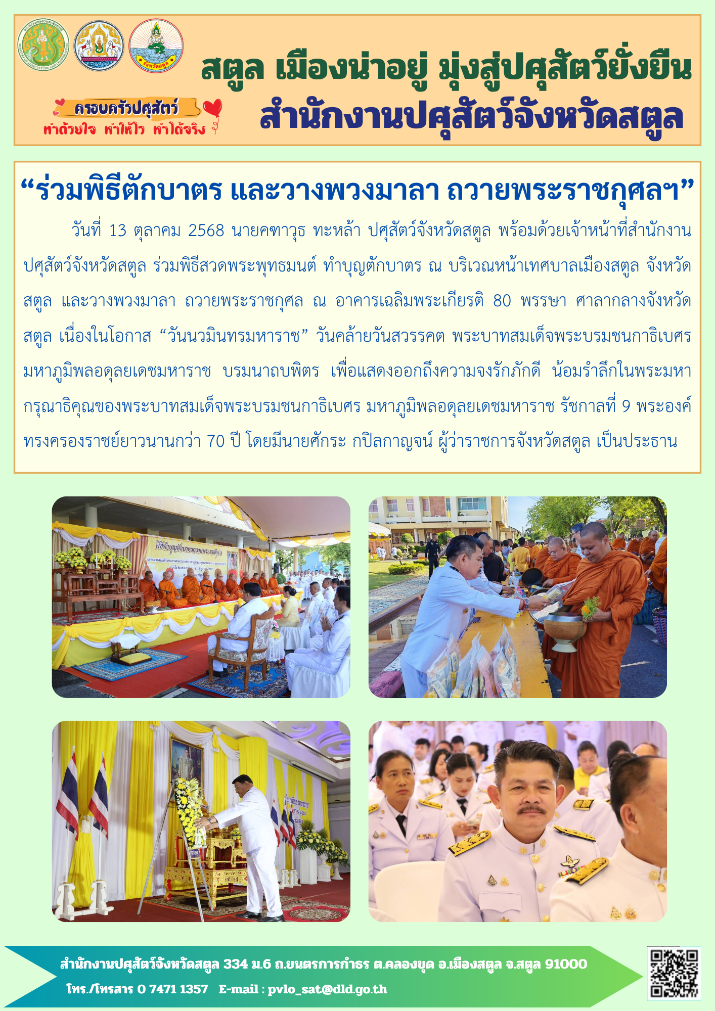 4. ปศุสัตว์จังหวัดสตูล ร่วมพิธีสวดพระพุทธมนต์และทำบุญตักบาตร ถวายพระราชกุศล