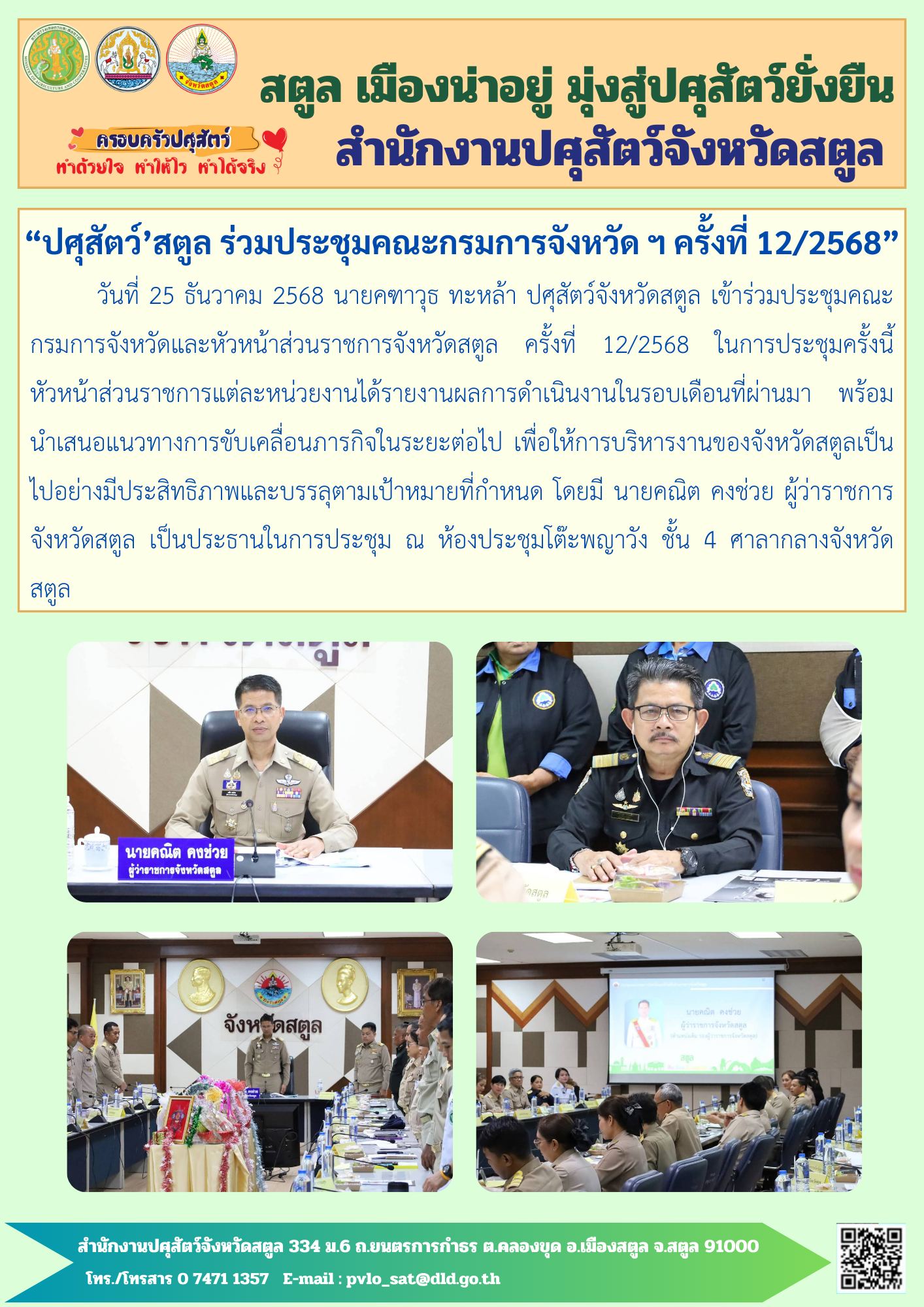 4. ปศุสัตว์จังหวัดสตูล ร่วมประชุมคณะกรมการจังหวัดและหัวหน้าส่วนราชการจังหวัดสตูล ครั้งที่ 12/2568