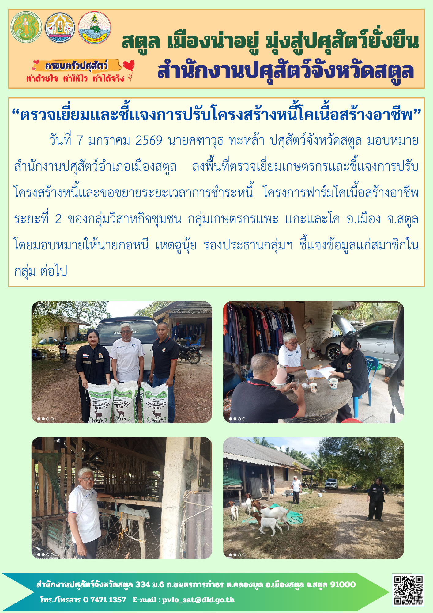 ปศุสัตว์อำเภอเมืองสตูล เยี่ยมเกษตรกรเเละชี้เเจงการปรับโครงสร้างหนี้ โคเนื้อสร้างอาชีพ ระยะที่ 2