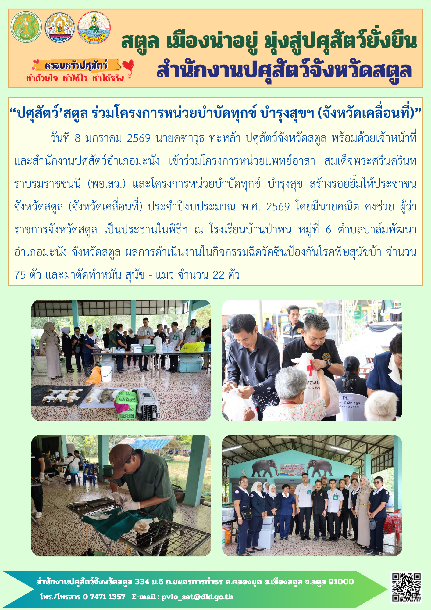 ปศุสัตว์’สตูล ร่วมโครงการหน่วยบำบัดทุกข์ บำรุงสุข สร้างรอยยิ้มให้ประชาชน จังหวัดสตูล (จังหวัดเคลื่อนที่)