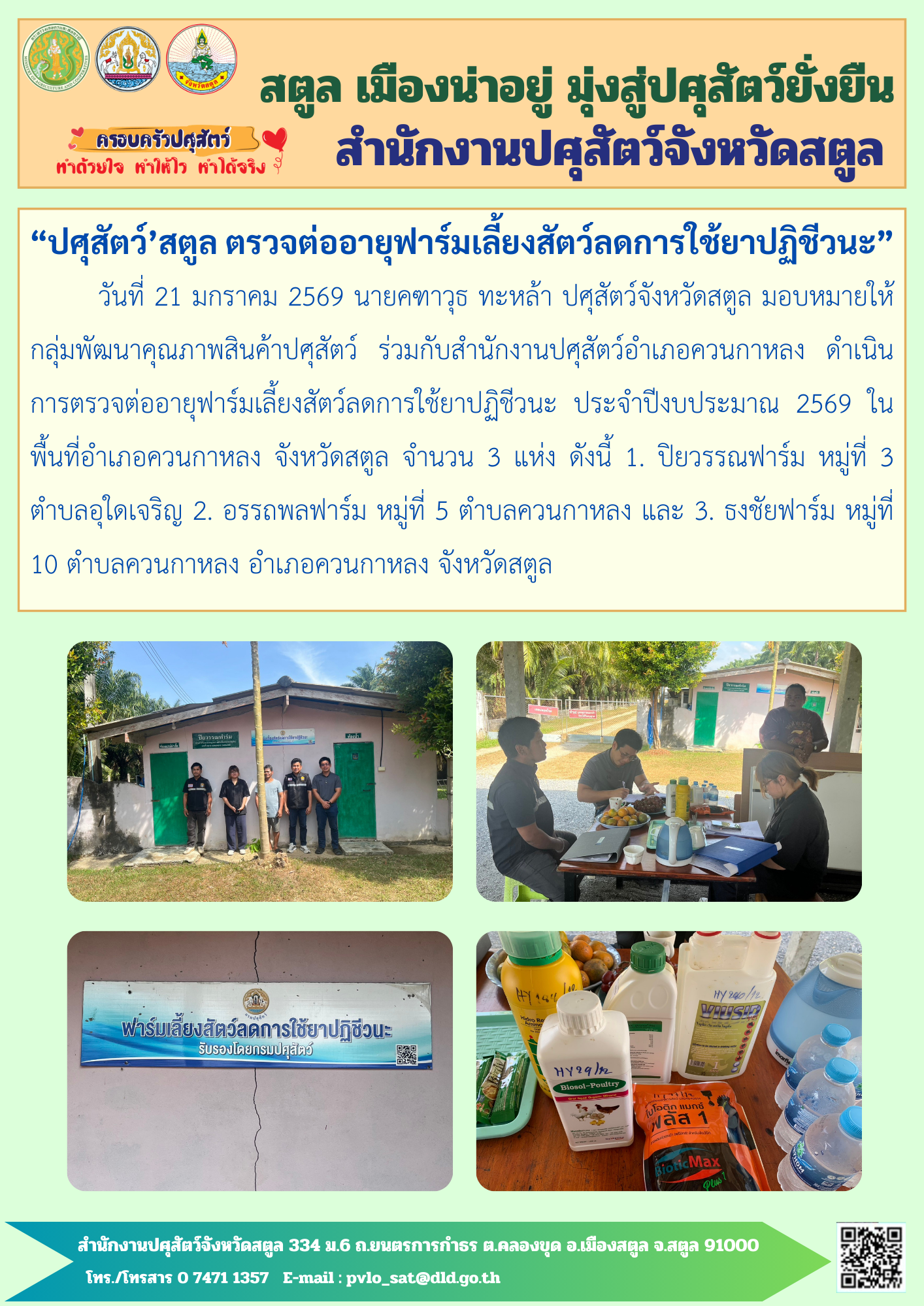 4. ปศุสัตว์'สตูล ตรวจต่ออายุฟาร์มเลี้ยงสัตว์ลดการใช้ยาปฏิชีวนะ ประจำปีงบประมาณ 2569