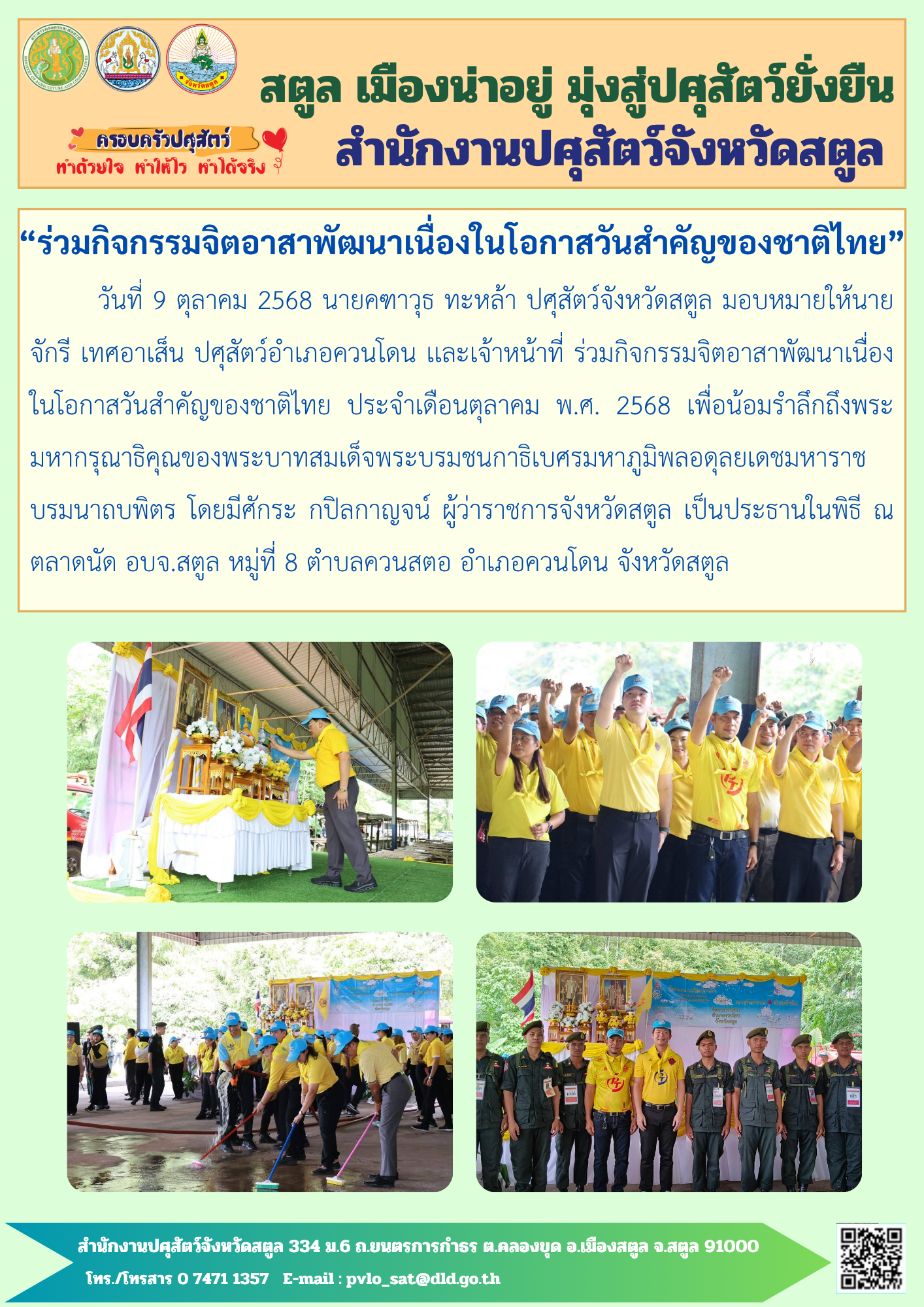 4. สำนักงานปศุสัตว์จังหวัดสตูล ร่วมกิจกรรมจิตอาสาพัฒนาเนื่องในโอกาสวันสำคัญของชาติไทย