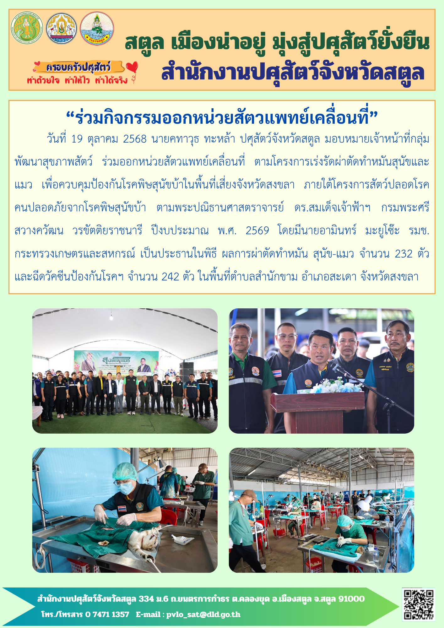 ร่วมกิจกรรมออกหน่วยสัตวแพทย์เคลื่อนที่ ภายใต้โครงการสัตว์ปลอดโรค คนปลอดภัยจากโรคพิษสุนัขบ้า