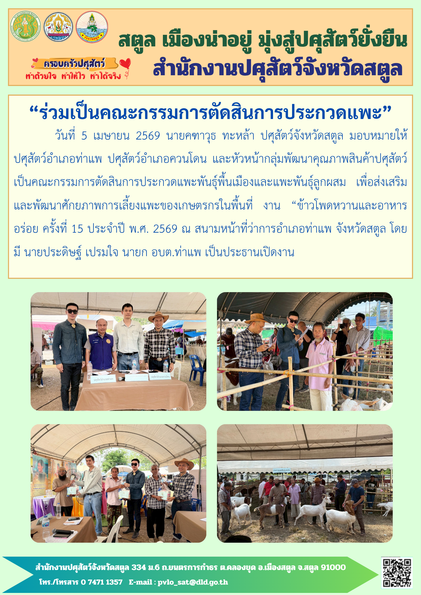 ร่วมเป็นคณะกรรมการตัดสินการประกวดแพะ ประจำปี 2569 ณ อำเภอท่าแพ จังหวัดสตูล