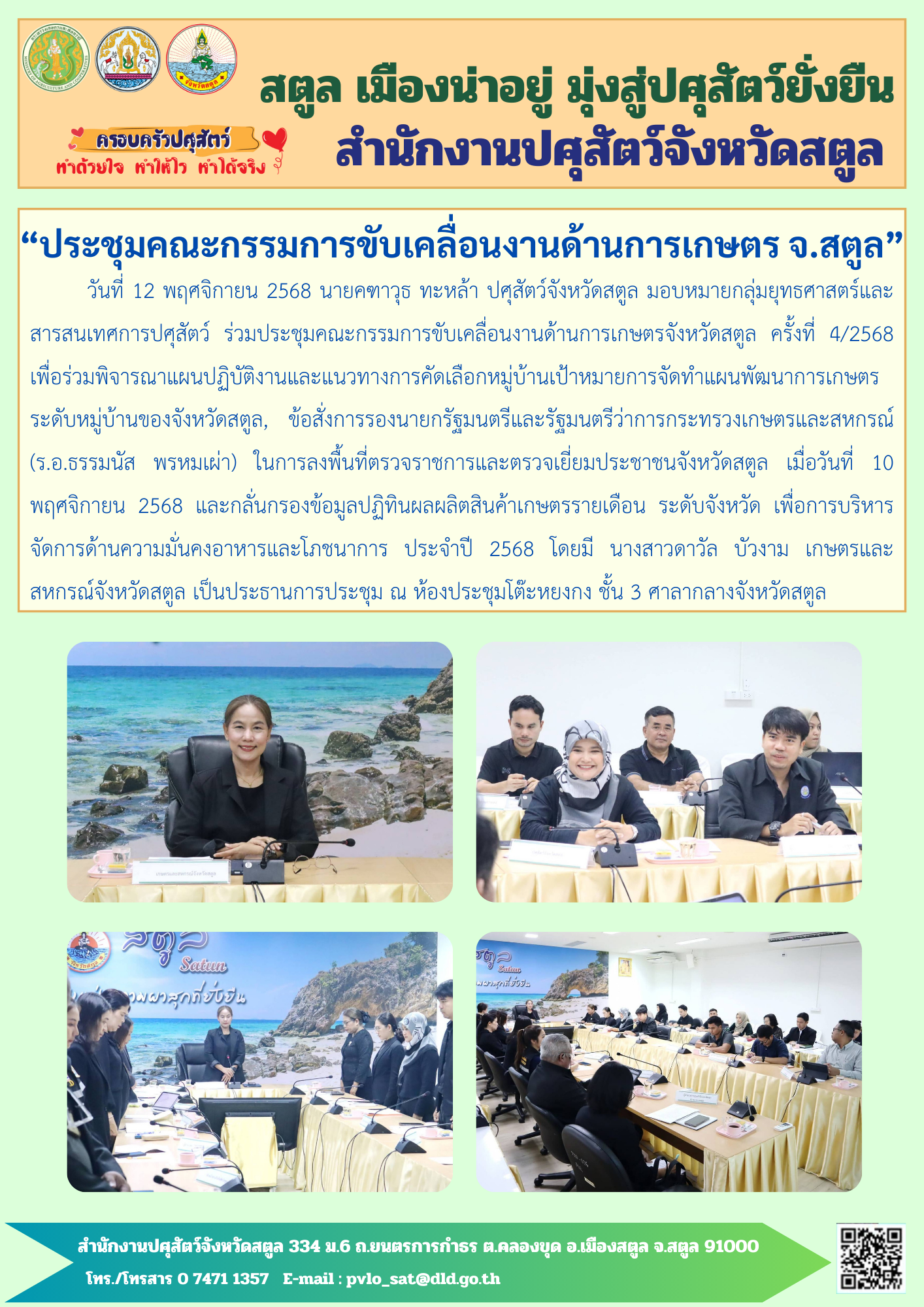 4. ร่วมประชุมคณะกรรมการขับเคลื่อนงานด้านการเกษตรจังหวัดสตูล ครั้งที่ 4/2568