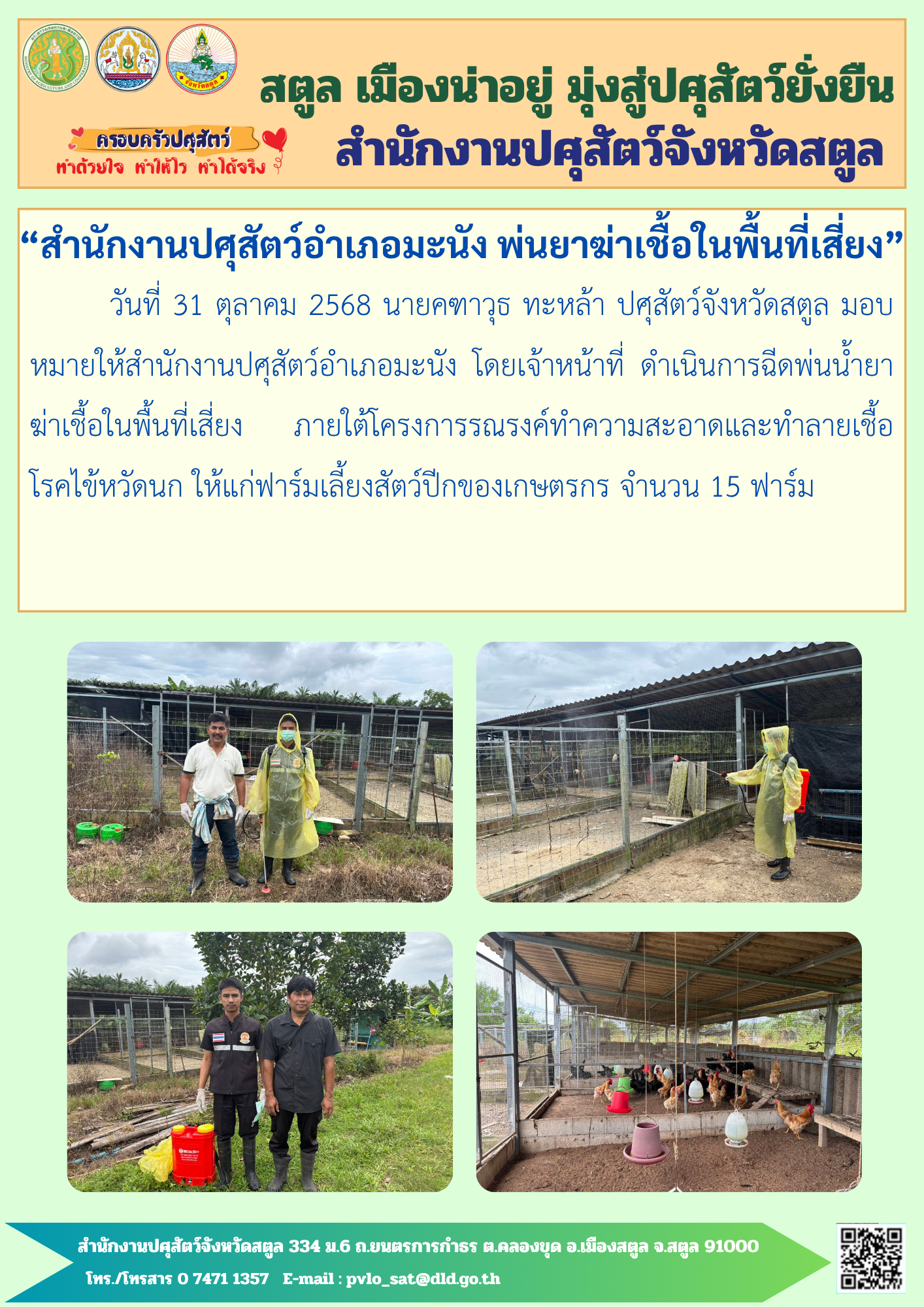 สำนักงานปศุสัตวส์อำเภอมะนัง ฉีดพ่นยาฆ่าเชื้อในพื้นที่เสี่ยง