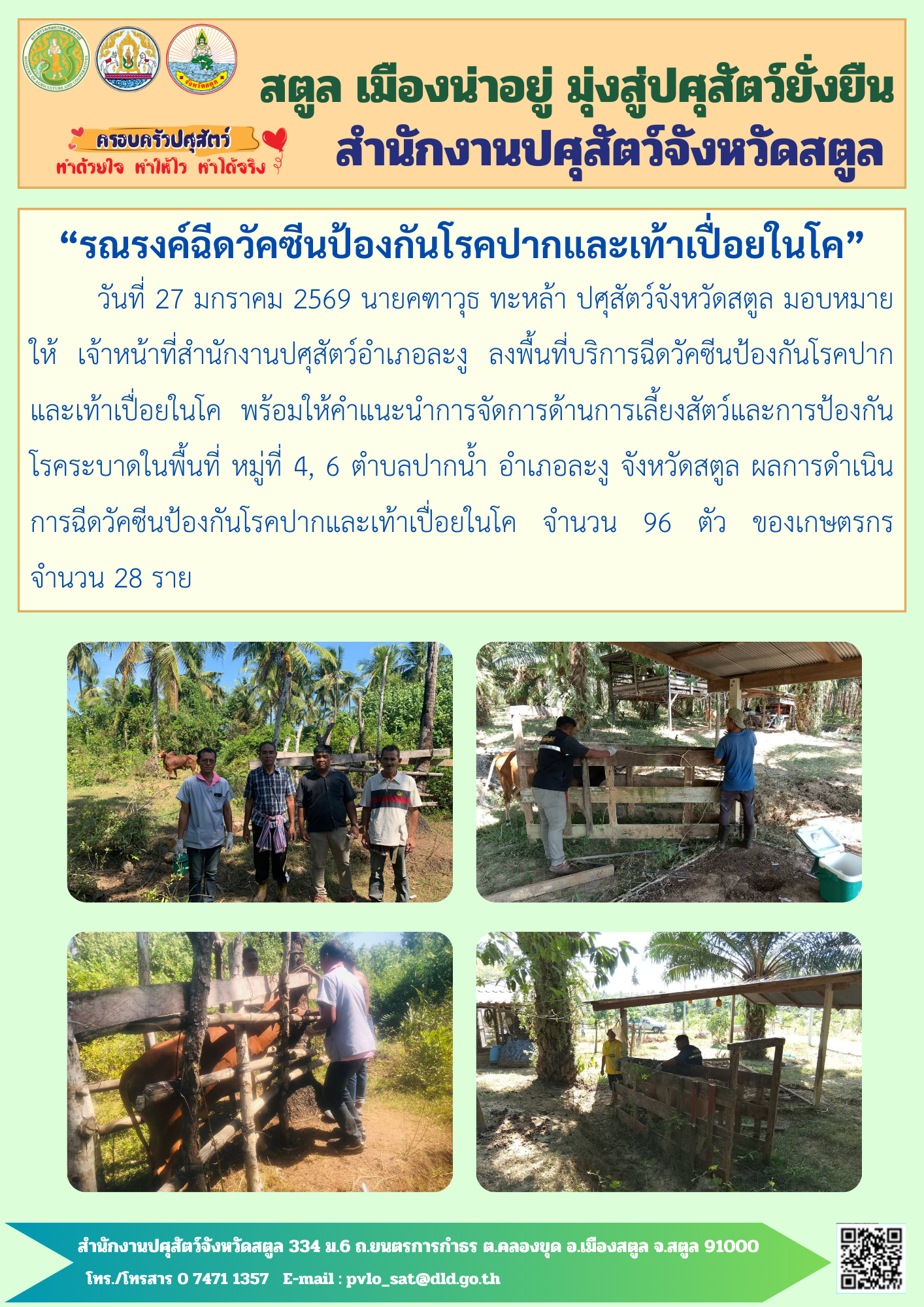 4. สำนักงานปศุสัตว์อำเภอละงู ฉีดวัคซีนป้องกันโรคปากและเท้าเปื่อยในโค