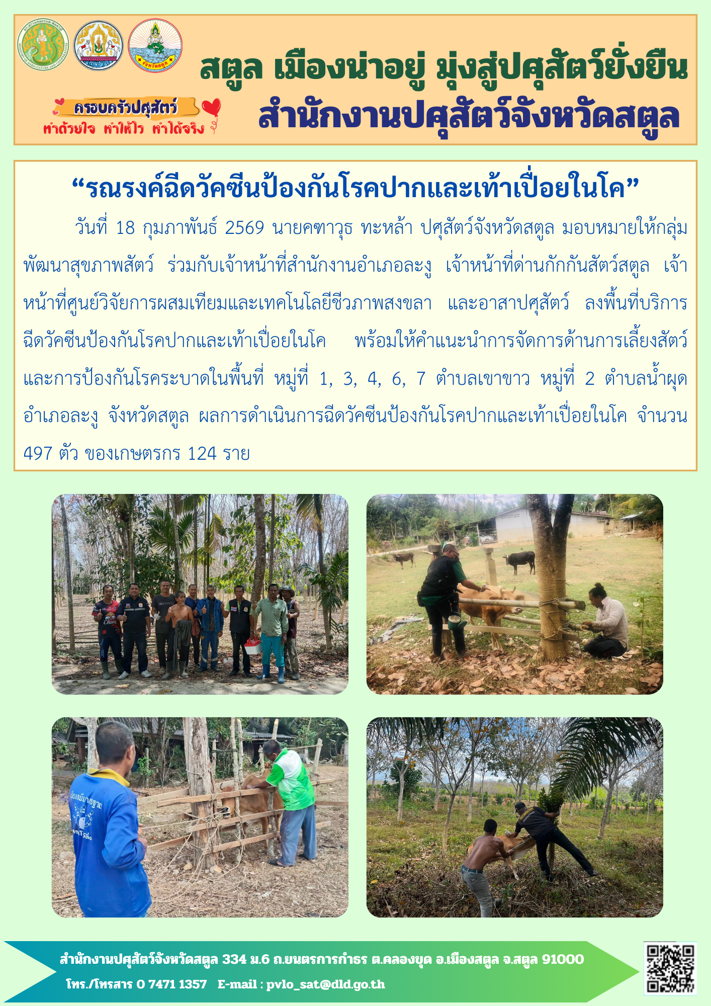 สำนักงานปศุสัตว์อำเภอละงู รณรงค์ฉีดวัคซีนป้องกันโรคปากและเท้าเปื่อยในโค
