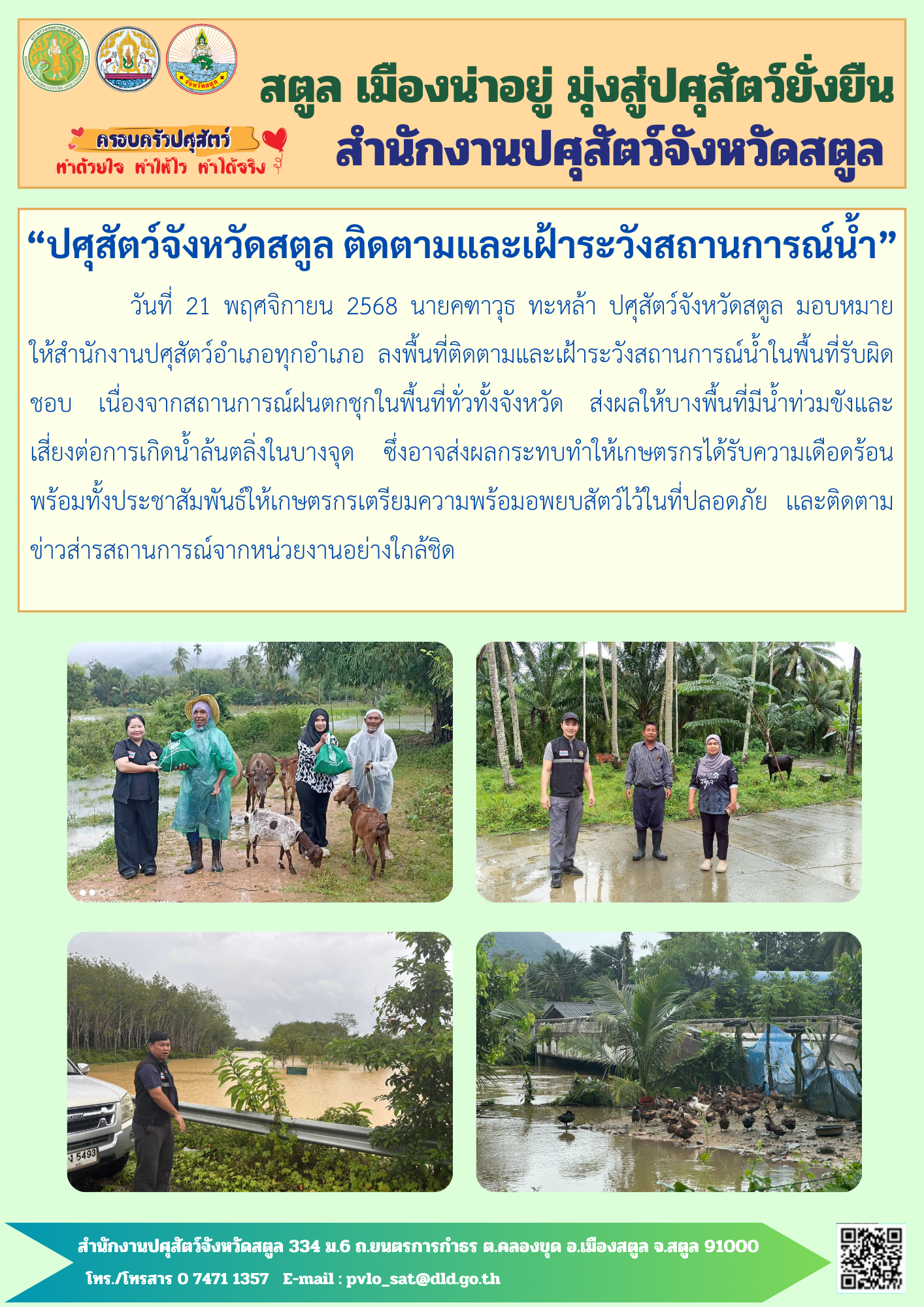 4. สำนักงานปศุสัตว์อำเภอท่าแพ ลงพื้นที่ติดตามสถานการณ์น้ำในพื้นที่