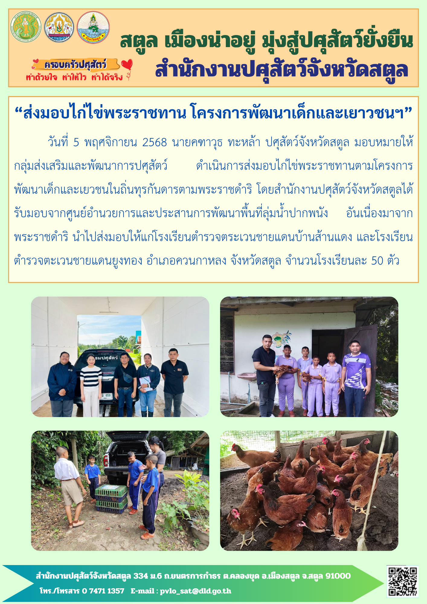 ส่งมอบไก่ไข่พระราชทาน โครงการพัฒนาเด็กและเยาวชนถิ่นทุรกันดาร