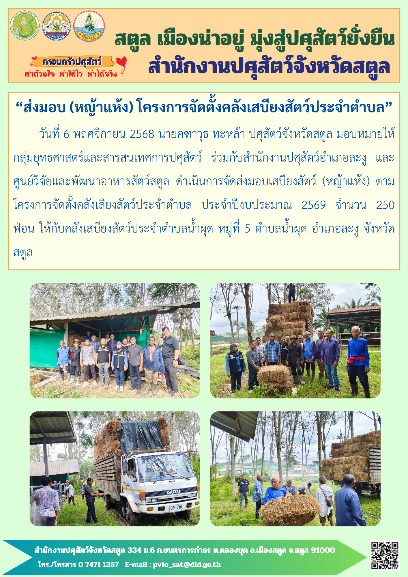 ส่งมอบเสบียงสัตว์ (หญ้าแห้ง) โครงการจัดตั้งคลังเสบียงสัตว์ประจำตำบล ประจำปีงบประมาณ 2569