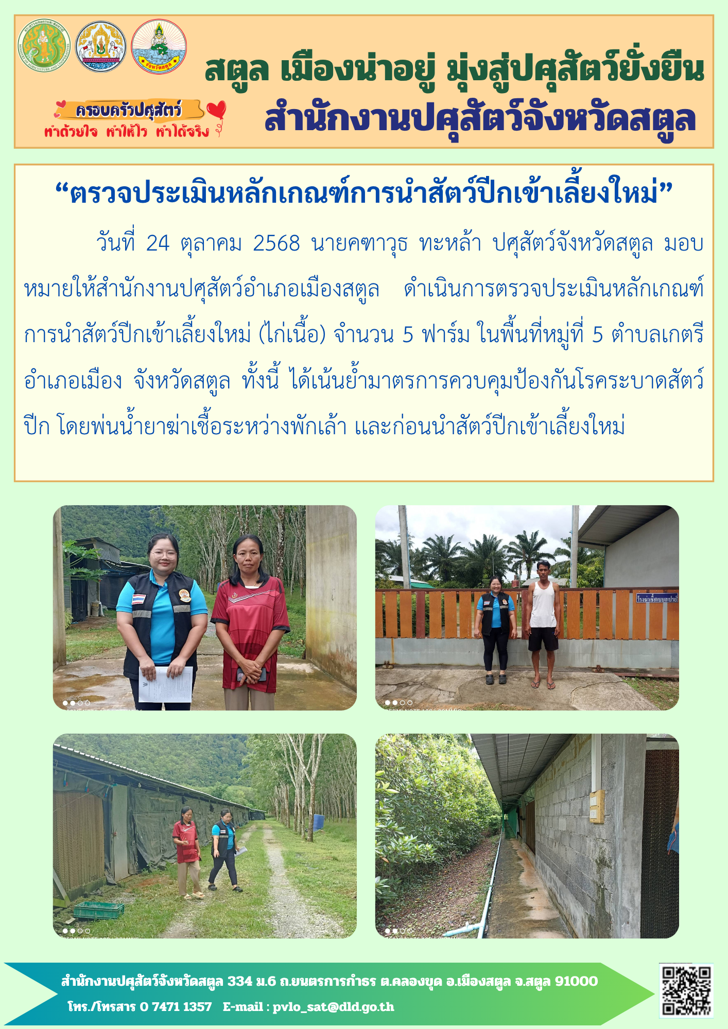 ตรวจประเมินหลักเกณฑ์การนำสัตว์ปีกเข้าเลี้ยงใหม่