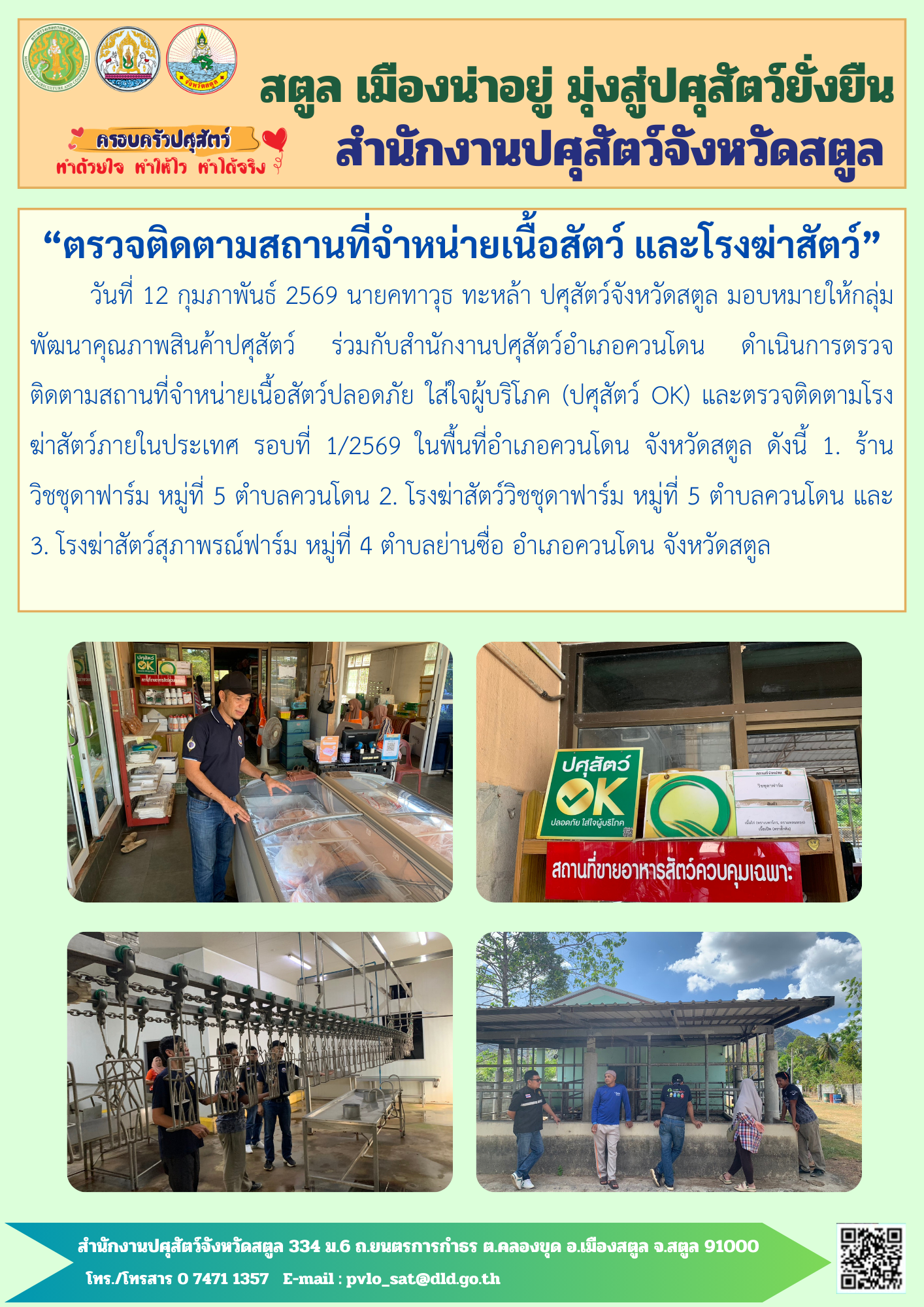ตรวจติดตามสถานที่จำหน่ายเนื้อสัตว์ปลอดภัย ใส่ใจผู้บริโภค (ปศุสัตว์ OK)