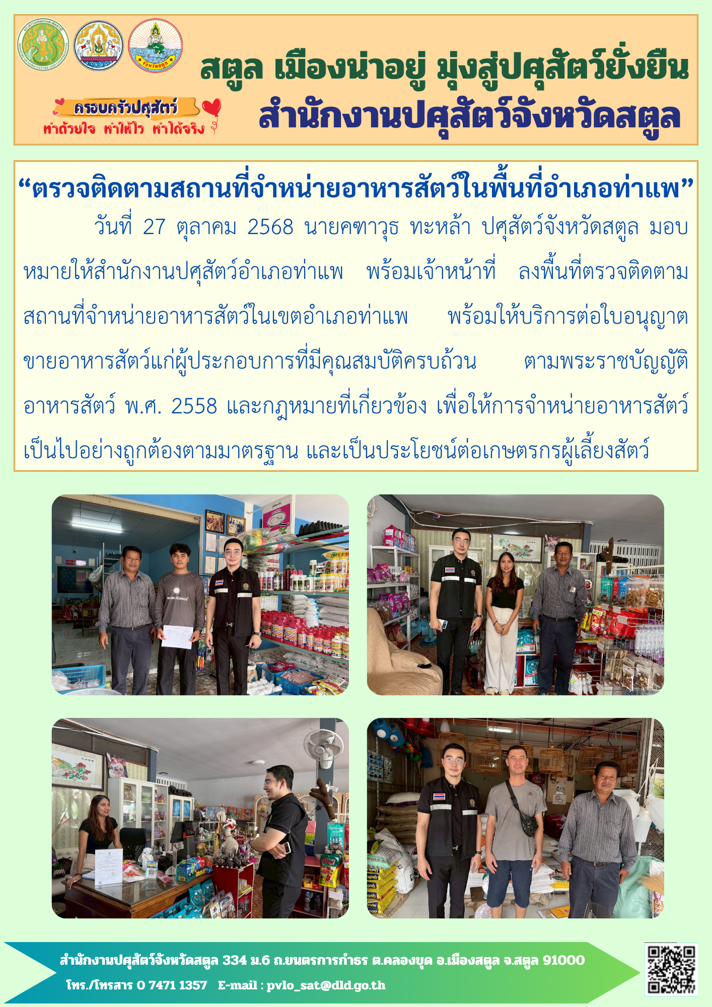 ตรวจติดตามสถานที่จำหน่ายอาหารสัตว์ในพื้นที่อำเภอท่าแพ